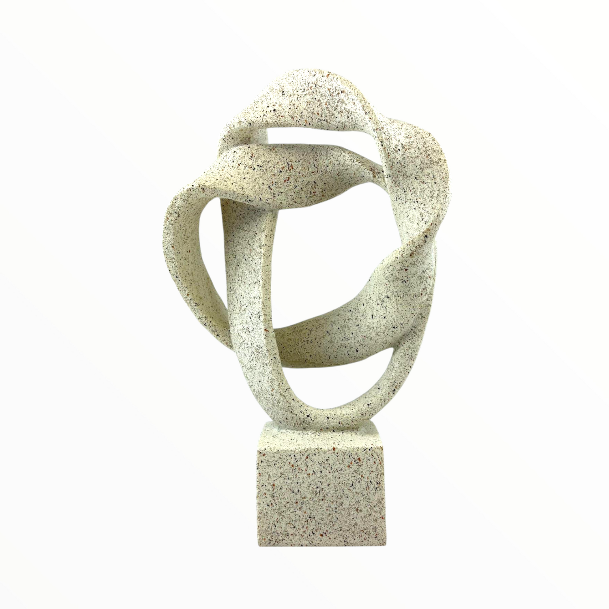 Elegant abstract sculpture in a smooth stone-like finish, designed with intertwined infinity loops. A unique modern decor piece for living rooms, offices, shelves, and entryway displays. Adds artistic balance and a contemporary touch to any space.