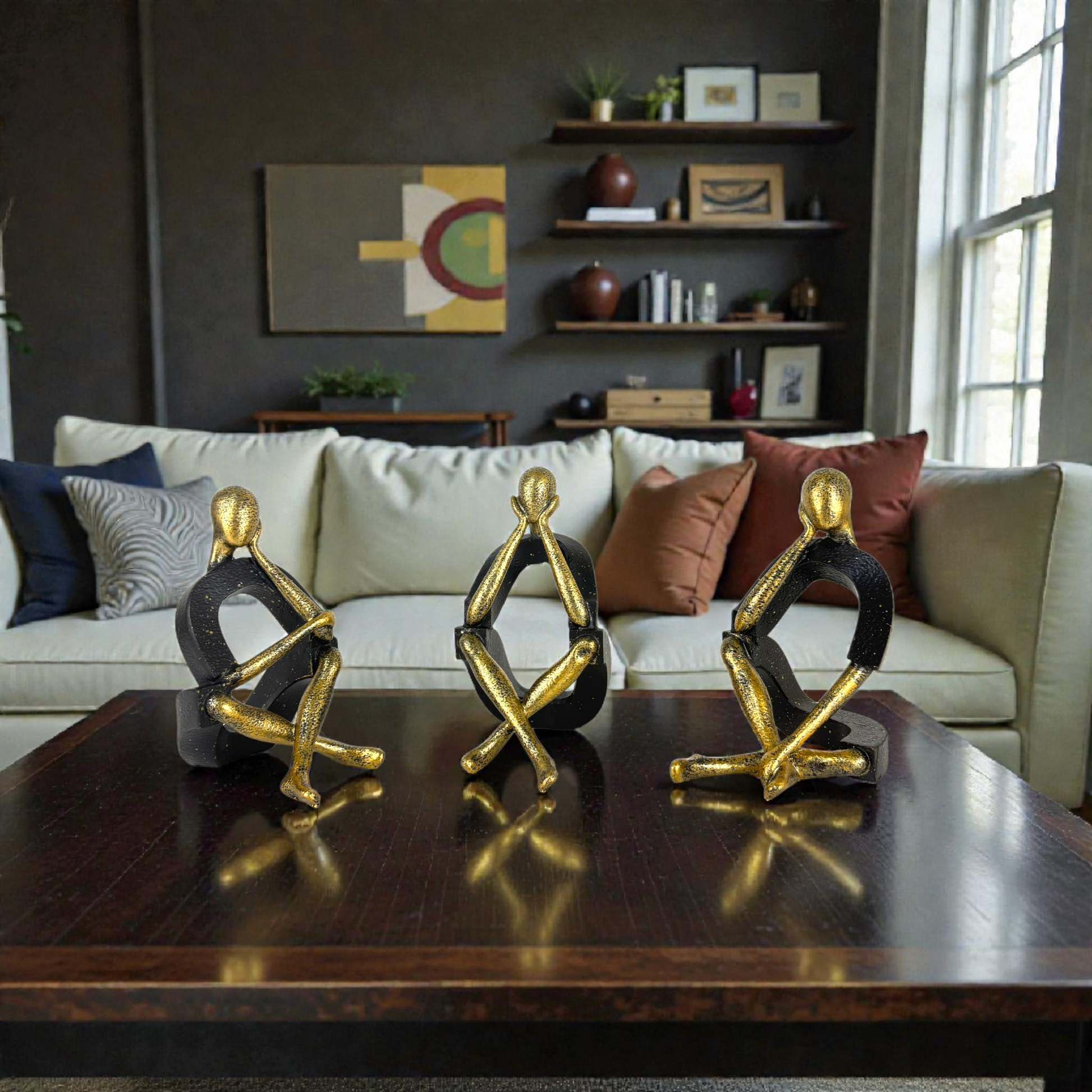 Abstract Thinker Figurine Set – Modern Gold & Black Resin Sculptures for Home & Office Décor (Set of 3)
