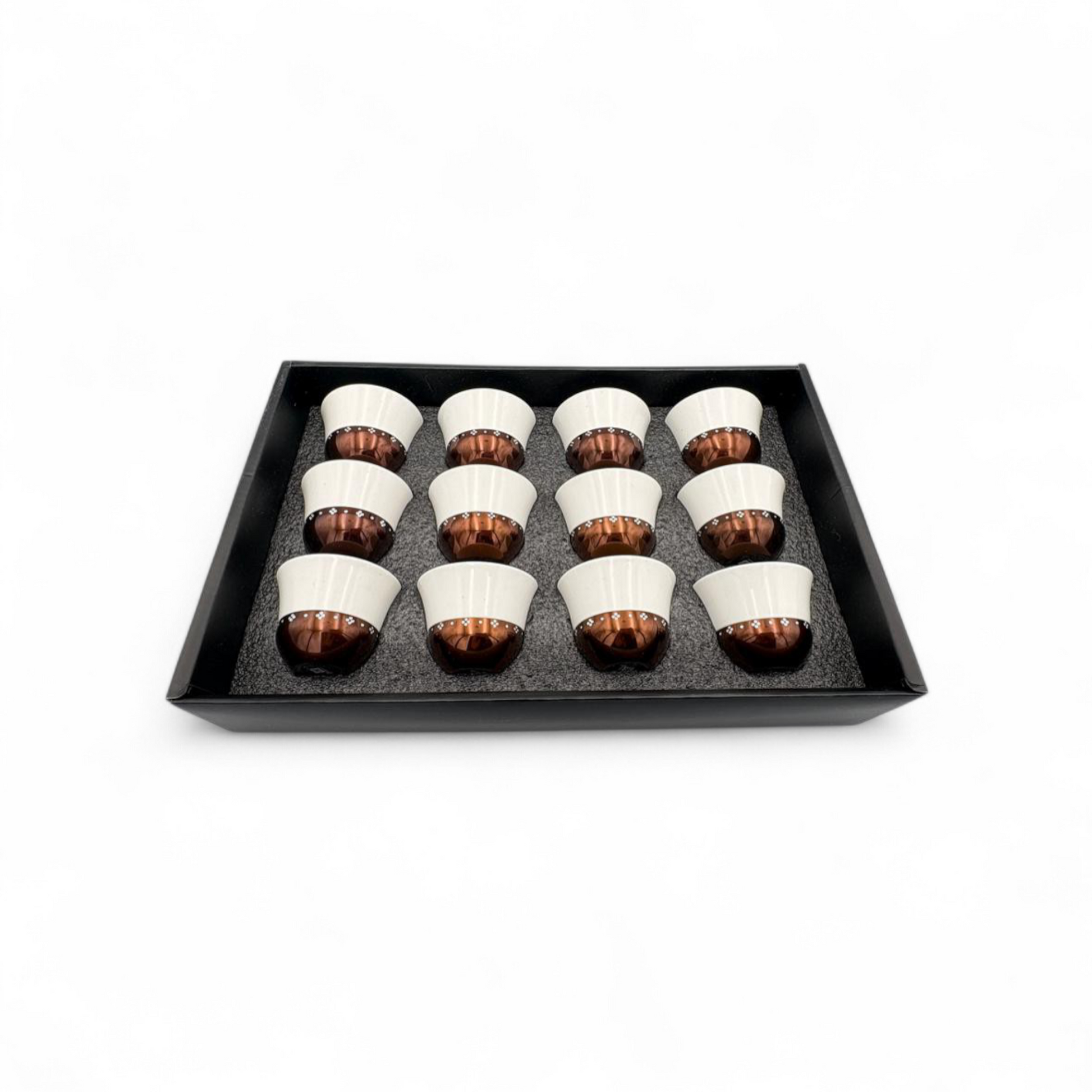 Coffee Cup Set of 12 – Brown & White Porcelain Cups Gift Box