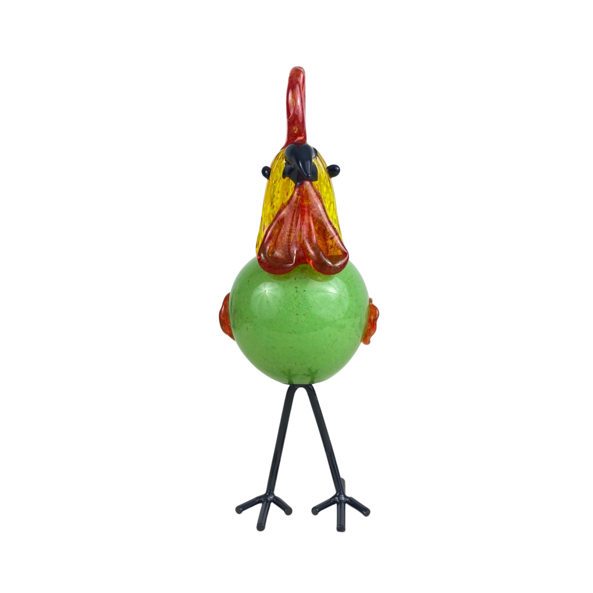 The Radiant Rooster is a stunning hand-blown crystal sculpture that embodies elegance and energy. With a glowing green body, fiery red and orange accents on its crest and wings, and a sleek black beak, this piece is a true work of art. Its delicate yet bold design makes it a perfect addition to any home, office, or art collection. Ideal for those who love unique, vibrant decor and appreciate masterful craftsmanship!
