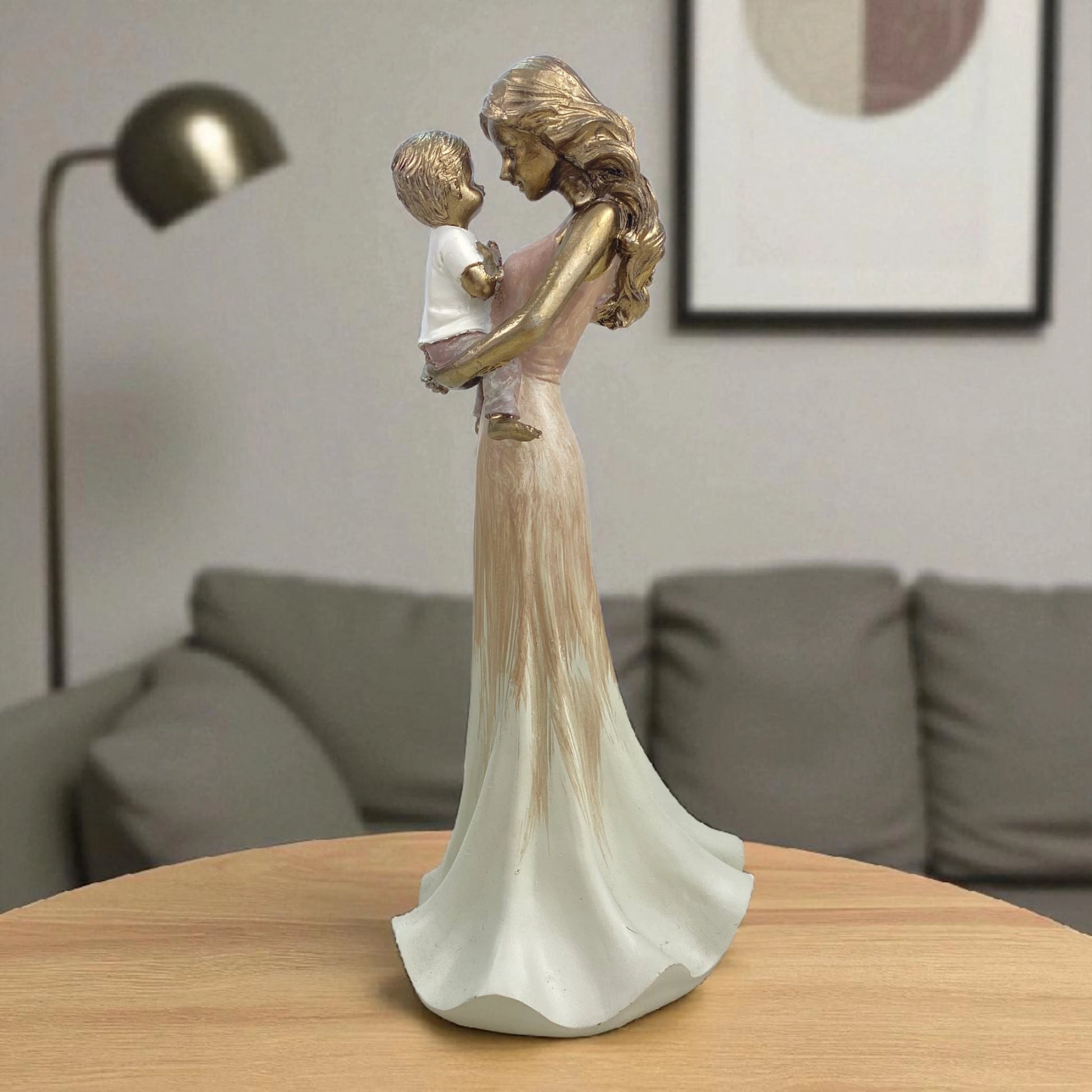 Elegant figurine of a mother lovingly holding her child, symbolizing unconditional love and warmth — a timeless gift for Mother’s Day or family-themed décor.
