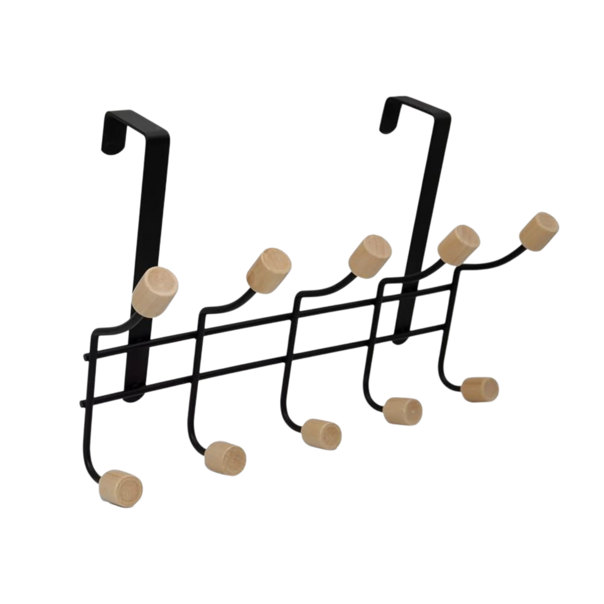 Over-the-Door Metal Hook Rack with Wooden Tips