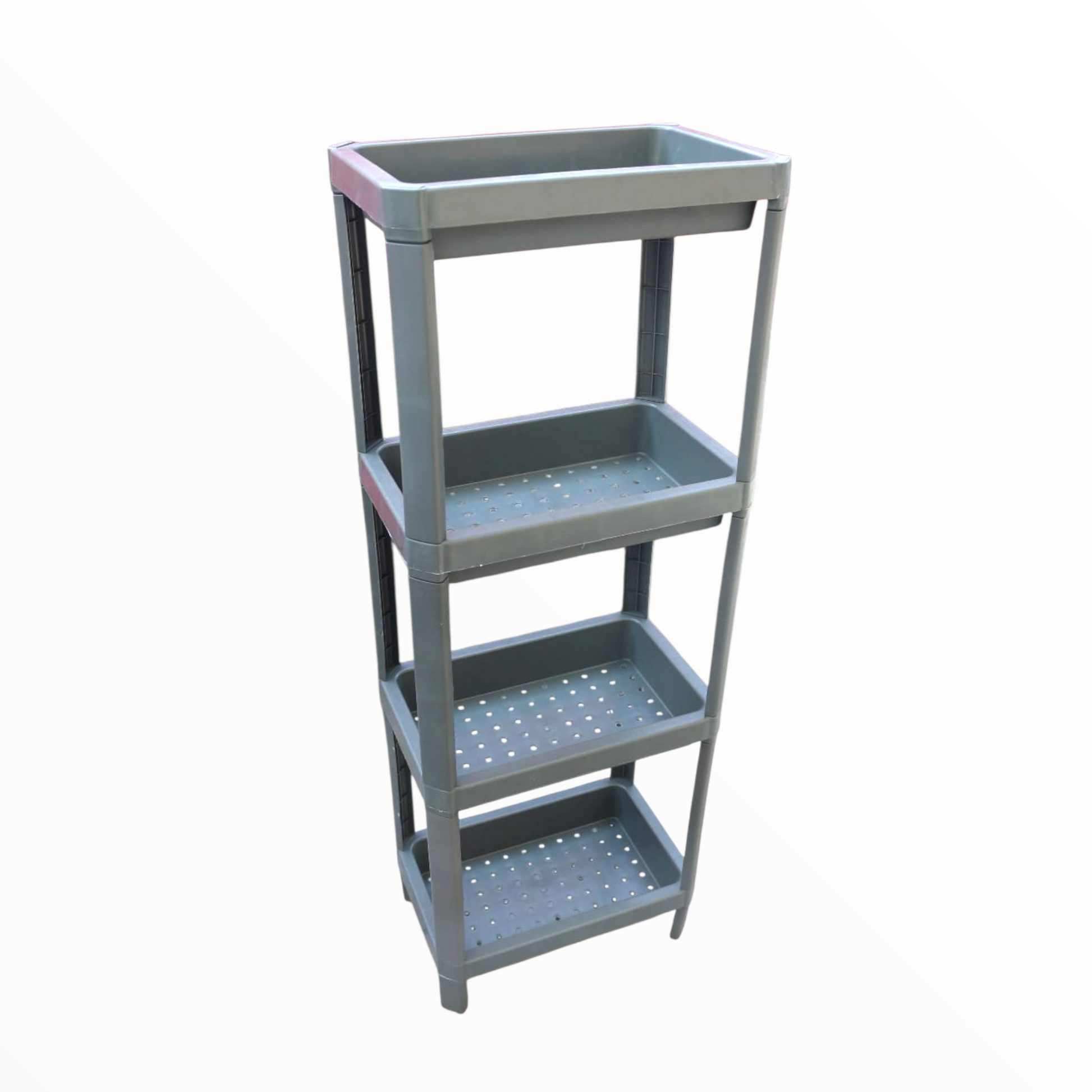 Organize your space effortlessly with this 4-tier plastic storage shelf organizer, designed for durability, stability, and everyday convenience. Made from high-quality, moisture-resistant plastic, this shelving unit is perfect for bathrooms, kitchens, laundry rooms, balconies, or storage areas.
