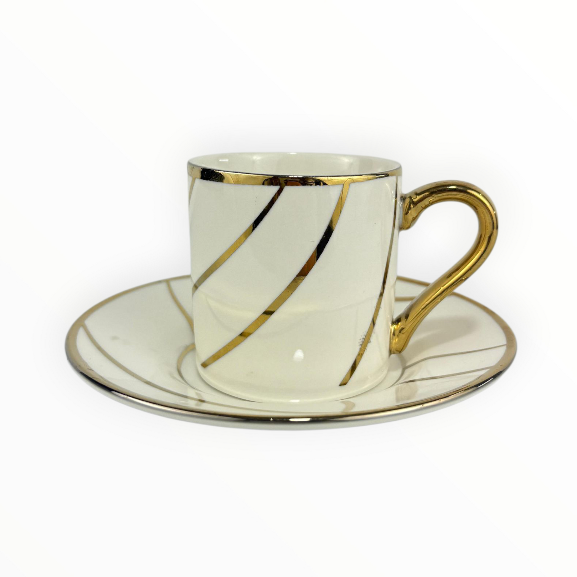 White Porcelain Espresso Cup with Gold Handle & Lines – Elegant Coffee Set 12pcs